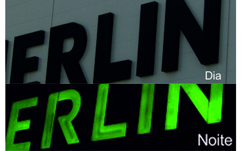 Estas são chapas acrílicas compostas por uma pigmentação especial, que só exibem mensagens legíveis quando iluminadas. O objectivo é a visualização, de uma forma intermitente, durante o dia.